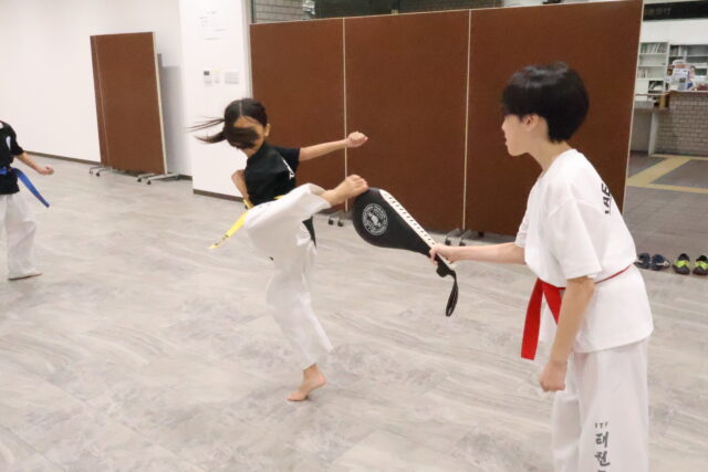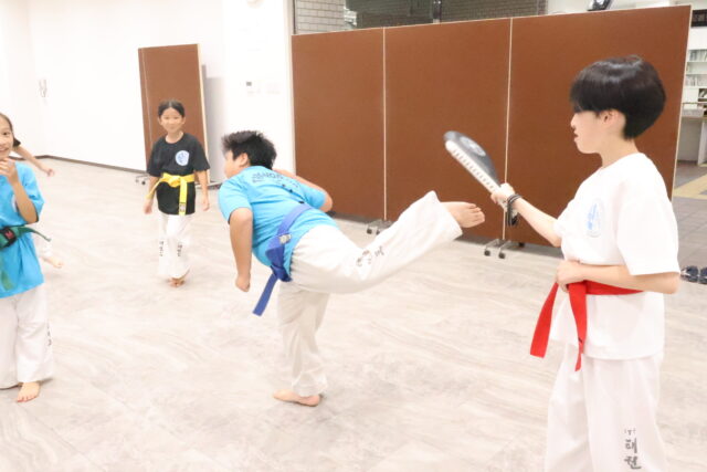 さて、ミット蹴り組はパンデトルリョチャギの練習です!